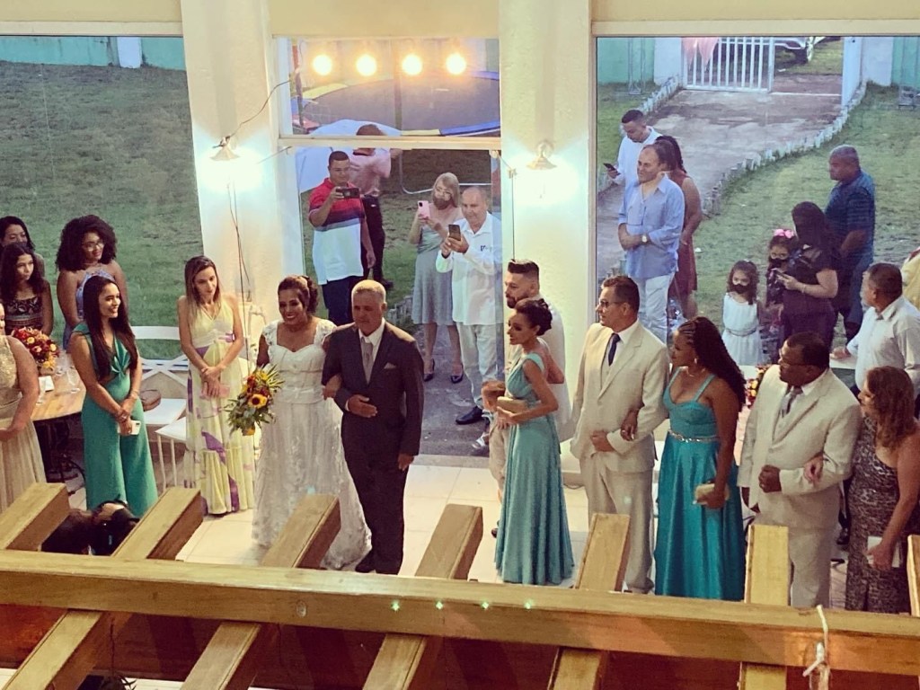O casal recebeu os duzentos convidados (escolhidos a dedo) no espaço do Residencial Barra Green. Familiares e amigos compareceram para prestigiar o romance do casal.